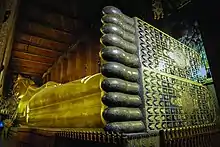 - Bangkok — Features the reclining Buddha of Wat Pho (วัดโพธิ์), possibly the largest reclining Buddha in the world. Also features the Emerald Buddha in the royal temple Wat Phra Kaew (วัดพระแก้ว), which is regarded by Thais as the holiest Buddhist temple in their country, and a popular destination for pilgrims. There are also numerous Chinese-style Buddhist temples to be found in Bangkok's Chinatown, the most famous one being Wat Mangkon Kamalawat (วัดมังกรกมลาวาส). Chinatown is also home to Wat Traimit (วัดไตรมิตรวิทยารามวรวิหาร), a Thai-style Buddhist temple that is home to a famous Buddha statue made of solid gold, the largest solid gold Buddha statue in the world.