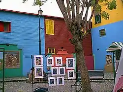 - 🌍 Caminito. Pedestrian street with arts and crafts. Tango dancers are in the cobblestone streets. The buildings are painted in bright colors.