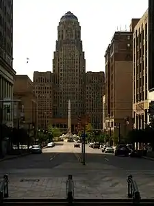 To add insult to injury, during the 1960s and '70s Buffalo's civic leaders responded to the deteriorating social conditions in the city by demolishing (in the name of "urban renewal" and "slum clearance") ethnic neighborhoods in such places as the Ellicott District and the Lower West Side that, though working-class, were in many cases healthy and vibrant. In particular, the splendid brick Victorian cottages of what was once the Lower West Side's "Little Italy" were nearly all lost to the wrecking ball, while the new public housing projects erected in the Ellicott District soon became high-rise versions of the slums they replaced, as the mere construction of new buildings did nothing to address the underlying social problems in the neighborhood. At the same time, noisy and intrusive expressways were constructed directly through Delaware Park and Humboldt Parkway, destroying the verdant ambience of what were (respectively) the largest park and the grandest parkway designed for the city by landscape architect Frederick Law Olmsted; thankfully, forceful opposition from neighborhood residents spared the Allentown Historic District a similar fate. In downtown, only one of the many examples of the senseless destruction of Buffalo's architectural heritage occurred in 1969, when several blocks of handsome Victorian commercial blocks as well as the stunning, castlelike Erie County Savings Bank building were demolished to make way for the Main Place Tower, a bland modernist office tower with an attached suburban-style shopping mall that utterly failed to attract shoppers back downtown in favor of the strip malls and plazas of the suburbs.