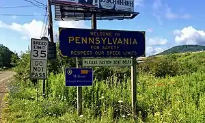 The United States has developed a reputation as a somewhat risky travel destination, especially when it comes to gun violence and urban crime. However, with the exception of its northernmost segment through Buffalo and its suburbs, the milieu of the Buffalo-Pittsburgh Highway is resolutely that of small-town America. While it would be a disservice to pretend that crime in the U.S. is strictly an urban problem, it bears emphasizing that rural crime generally takes a different form, and that your chances of being mugged, shot, or a victim of whatever lurid fate you might imagine befalling visitors to the inner city are effectively zero. Generally, the only time travellers run into trouble with the locals around these parts is when they venture onto private property without permission, an offense that is taken with the utmost seriousness in America's rural hinterlands. "NO TRESPASSING" signs should be heeded scrupulously at all times.