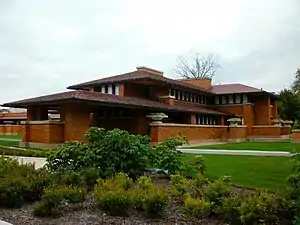 The Darwin Martin House is not the only Frank Lloyd Wright-designed house in North Buffalo. Another one, the π Walter V. Davidson House, can also be found in Parkside. Located at 57 Tillinghast Place in the northwest extremity of the neighborhood, the Davidson House was designed for its namesake, who was an executive at the Larkin Company between 1906 and 1913, thereafter founding the Davidson Shoe Company. Though it's noticeably smaller and more unassuming than the Darwin Martin House β the smaller budget Wright worked with in constructing the Davidson House was perhaps a forerunner of the "Usonian" houses he designed for middle-class clients toward the end of his career β its modest scale belies a stunning two-story living room dominated by a massive bay window at its east end. Sadly, the Walter Davidson House is privately owned and not open for tours.