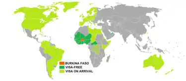 Burkina Faso, formerly Upper Volta, is a landlocked country in West Africa. Burkina Faso is one of the friendliest - and until the late 2010s, one of the safest - countries in all of Africa. Even before the unrest that made travel to the country unsafe, it received only a few tourists per year, and was an excellent destination for anyone interested in seeing a beautiful West African country and exploring African culture and music.