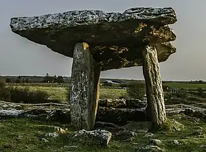 - 🌍 Poulnabrone dolmen south of Ballyvaughan is one of the most impressive in Ireland. Three portal stones support a massive capstone - originally they would all have been covered by an earth mound. The remains of 33 adults were found here, dating to 3200-3800 BC.