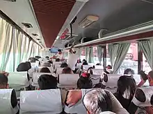 - Ordinary- 2-3 layout (6 seats on the rearmost row), with hard seats. Doors are usually left open for most of the trip, except on expressways due to safety regulations. Cheapest, but are crowded, hot and often dangerous. Most bus companies have phased out service class out of safety concerns, and the remaining ones mostly ply routes to low-income suburbs.