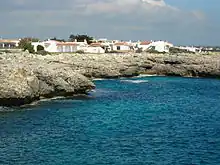 Cala en Bosch, also Cala'n Bosch or Cala en Bosc, is a beach, marina, hotel, and apartment resort about 9 km (5.6 mi) south of Ciutadella de Menorca. It is bordered by Son Xoriguer to the east and Cap d'Artrutx, the southwestern point of the island to the west which contains the Lighthouse of Artrutx. There are scuba diving facilities in the area. Cala en Bosch is edged by a shoreline of jagged rocks, several coves, and an inlet to a marina in an artificial lake.