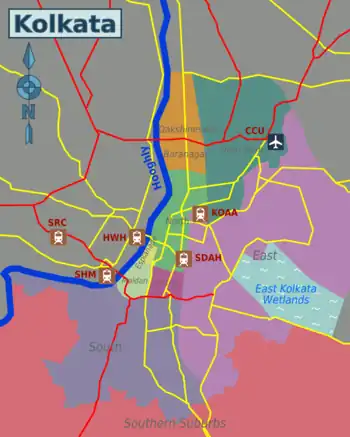 This article covers the Kolkata Municipal Corporation (KMC) area with adjacent suburbs. Distant suburbs, including Howrah, Barrackpore and Barasat, are covered separately.