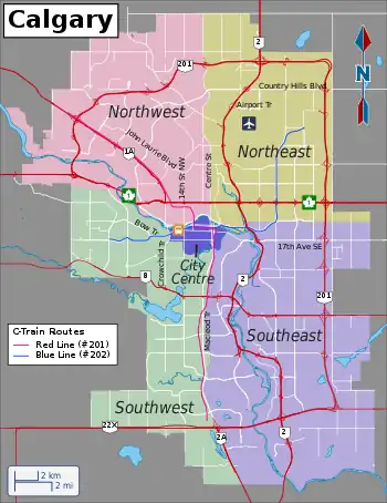 | Routes through Calgary |