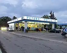 - π Peter's Drive-In, 219 16 Ave NE, β +1 403-277-2747, info@petersdrivein.com. Daily 9AM-midnight. Classic drive-through burger joint. Locally-famous burgers, fries, onion rings, and milkshakes at very affordable prices. Big portions β a large fry is the size of a shoebox, a large onion ring order is the size of a lunch bag. Park in the adjacent lot and walk up to the front windows; you'll get faster service than in the drive-through and you can eat at one of their picnic tables. The finest milkshake in the city; thick and made with real fruit (over 20 flavours!) Some feel that the quality of the hot food has declined, but most agree that the shakes still rock. $10/meal (burger, shake, onion rings)'.