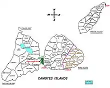 The Camotes are a small island group in the Philippines. Administratively, they are part of Cebu Province but they are some distance east of Cebu Island (63 km from Cebu City), actually closer to Leyte.