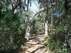 Mainland portions of the park consist of pine flatwoods, liveoak/cabbage palm hammock and live oak scrub. A system of ridges and alternating swales can be seen in the south end of the park, revealing the location of former shorelines formed during prior geologic periods. The highest point in the park is actually man-made, a 35 feet high mound of oyster shells constructed by Native Americans between 800 and 1400 AD. Called Turtle Mound, its summit offers a magnificent view of the lagoon, ocean and barrier island.