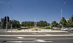 Parkes Way (unnumbered) doesn't exactly pass through Civic, but marks Civic's southern border, bypassing the city, and the easiest and fastest way if you're coming from the Tuggeranong, Weston Creek, Molonglo Valley, and Belconnen. There are three exits along the freeway and one massive roundabout at the very end.