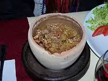 • Testi Kebap (jug kebap) Meat and vegetables cooked in a clay pot (or jug) sealed with bread dough. The pot is broken when serving.