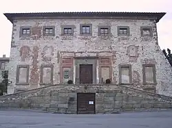 - Vernazzano. A small village just to the north of the lake and the highway to Perugia. Mainly known for its "leaning tower", which leans more than that of Pisa ever did. This was built before 1089 as part of a castle. The castle and the surrounding settlement were damaged by wars in 1400s and two century later, by a strong earthquake. Erosion of the foundations by fast-running streams caused the tower to lean in the eighteenth century. It has been abandoned for almost 300 years. To avoid the tower’s collapse it is held up by steel wires.