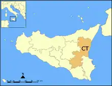 The Metropolitan City of Catania (Italian: CittΓ metropolitana di Catania) is an administrative division on the eastern coast of Sicily, Italy. It replaced the former Province of Catania on 1 January 2015.
