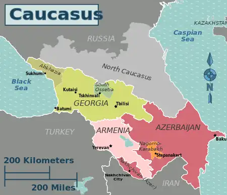 Parts of Turkey and Iran are also included in the Caucausus, but we don't cover them in this article as they are covered under the Middle East.