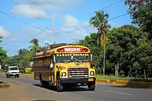 The most common and popular options are the second-class chicken buses (chicken bus, camionetas, autobuses de parrillas, polleros, mini-bus, microbus) in decommissioned U.S. school buses painted in all sorts of funky colors and patterns. Other second-class buses operate in the Toyota Coaster mini-bus, a smaller Toyota "HiAce" van (referred to as "microbus", "minibus"), a pick-up truck with only standing room on the bed (picop), or some similar type of vehicle that functions the same way as the "chicken bus". Second-class bus routes are more frequent and reach more places for a cheaper fare than first class pullman but they also take considerably longer to travel over longer distances with multiple stops to pick up and drop off people. Chicken buses don't cross international borders but they go to the border crossing station or border town on their side of the border. Travelers would then walk across the border and then continue on another bus from the other side.