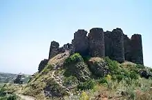 On the southern face of Mt. Aragats, π Amberd Fortress. is a quick trip from Yerevan and a popular escape from the Yerevan summer heat. The fortress looms over a small church, and both overlook the Ararat Valley and Mt. Ararat across the valley. Further up the mountain is a nice lake which is the starting point for the hike up to the southern peak of Mt. Aragats.