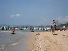 The beach stretches at least a couple of kilometers in either direction and is dotted with shops selling beachwear, stands selling seafood and fruit, massage parlors, restaurants, and 7-Elevens. All of these get sparse as you move away from the main street.