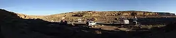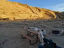 The park includes a single, rudimentary campground. Fee $10/site/night ($5 with NPS Park Pass). There is no potable water, but bottled water may be purchased at the visitor center, or water containers filled from the park's water system. Vehicles (RVs, trailers) must be no longer than 30 feet. The campsites are first-come, first-served. In the non-winter seasons, the park rangers host a star party on Tu, F and Sa. evenings, complete with telescopes and advice on timely things worth seeing in the night skies.