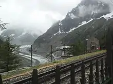 From Paris and other points west, the usual route is via Geneva (3 hr 15 min from Gare de Lyon) then to Martigny (90 min, frequent trains towards Brig) to join the mountain railway. The other approach is via Annecy then bus to join the mountain railway at St-Gervais-les-Bains. In winter St Gervais has direct trains from Paris.