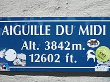- 🌍 Aiguille du Midi cable car (Téléphérique de l'Aiguille du Midi). This is one of the highest cable-cars in the world. The valley station is in Chamonix town centre at 1035 m. The first car ascends to Plan de l'Aiguille at 2310 m. From there the second car ascends to 3810 m, including one 3 km gulf between pylons, with the complete ride taking 20 minutes. At the top there is a restaurant and viewing platforms, and you can take an elevator to the summit of Aiguille du Midi at 3842 m. Dress very warmly. This is the highest point of the lift system, and the summit of Mont Blanc looks temptingly close, but don't be deceived: it's an arduous up-and-down route that needs a full day to ascend and return. You can continue towards Italy by the Vallée Blanche cable car (listed below); expert skiers can descend the Vallée. Day return adult €63, child & senior €52, one way adult €50.