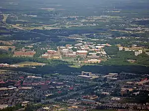 University City is a semi-urban area in the northern reaches of Charlotte. It is an "edge city", a sprawling, suburban area with a population of 160,000 (2012) centered around a "downtown" area at the intersection of N. Tryon St. and W.T. Harris Blvd. University City is home to contains major establishments such as the University of North Carolina at Charlotte (UNCC) and Verizon Wireless Amphitheater.