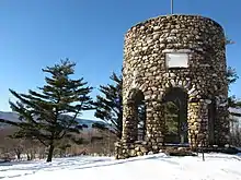 Stone tower honoring the settlers of New Providence, now Cheshire, and holding the tomb of Col. Jorab Stafford, hero at battle of Bennington during America's War of Independence