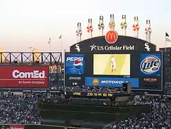 - π Guaranteed Rate Field (Comiskey Park) (Sox-35th Red Line). Formerly known as New Comiskey Park and later as U.S. Cellular Field, this is the home of the White Sox. The stadium itself was a notorious dud when it opened in 1991, but recent renovations have helped tremendously. If you just want to see a Chicago ball game and don't care who is playing, the stately charm of Wrigley Field might be the better option. But Sox tickets are easier to get, the fans are no less loyal, and the fireworks shows after Saturday night home games (win or lose) are worth the price of admission by themselves. For a nifty ballpark treat not offered at Wrigley, try the elotes, corn-off-the-cob with your choice of salt, butter, cheese, lime, and/or red pepper.