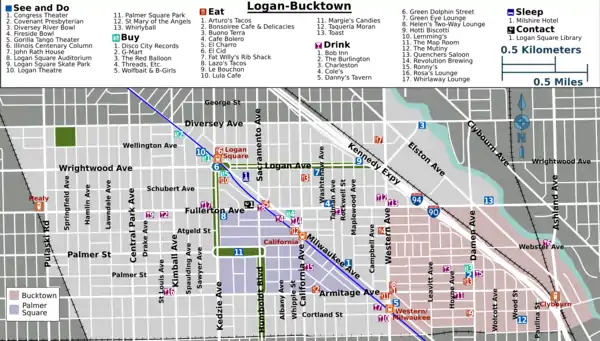 Logan Square is an expansive neighborhood with sweeping boulevards on Chicago's West Side. It shares a wealth of dive bars and cheap rock venues with Bucktown, which becomes a high-fashion destination when close to Wicker Park.