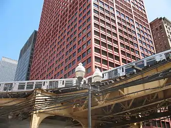 - 🌍 Chase Tower, 21 S Clark St. 850 ft. Located at the exact center of CTA's Loop transit system, this building is distinctive for its vertical curve. It has been renamed for each of the successive banks that have bought out its previous tenants — for example, it was the BankOne Tower until 2005. The plaza outside is more interesting than the interior — it is home to an enormous mosaic by renowned Russian painter Marc Chagall.