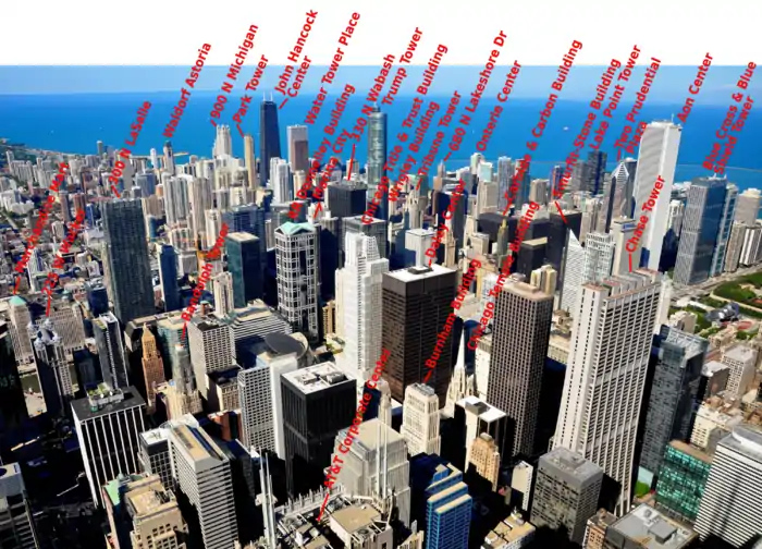 The following is a reference list of Chicago skyscrapers, in descending order by height, listed on the views maps. For directions, maps and information for buildings that are open to visitors, see individual district articles. All but one of these buildings can be found in the Loop and the Near North.
