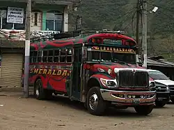 A "Camioneta", what tourists sometimes call a "chicken bus", is the main form of local transport between towns, villages and cities throughout Central America and it is usually the cheapest option for travelling for any distance in these countries. They are usually an old school bus from the USA or Canada which has been brightly painted, often with religious motifs and phrases equating to "Jesus is my driver" and "Jesus protects me", which may justify their use of excessive speed and driving techniques such as overtaking around a blind corner on a narrow road on the top of a hill.