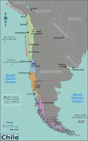 The land border can be crossed to Argentina, Bolivia and Peru.