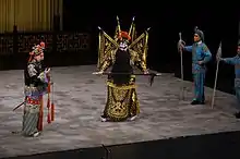 - Kunqu (昆曲 kūnqǔ) — a style of Chinese opera that originated in Kunshan but is now performed nationwide, and regarded by many to be the most refined form of Chinese opera. In modern times, Beijing and Suzhou are considered to be the main centres of this style of opera. It can be divided into at least two distinct styles: northern style kunqu (北曲 běiqǔ) and southern style kunqu (南曲 nánqǔ). The former is mainly performed in Mandarin, while the latter is mainly performed in the Suzhou dialect of Wu Chinese.