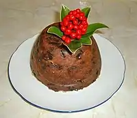 Certain confectionaries are Christmas staples. The Yule log (bûche de Noël) is a popular chocolate cake in French-speaking Europe, and has spread to France's former colonies around the world and to much of the Anglosphere. In Spain, mazapán (marzipan) from Toledo and turrón (similar to French nougat or Italian torrone) from Alicante and Jijona are popular Christmas sweets. Cakes or puddings incorporating nuts, spices, and candied fruits are common in Europe: German Stollen, Italian pannetone, and English Christmas pudding and Christmas cake are famous examples that have been adopted outside of their native lands.