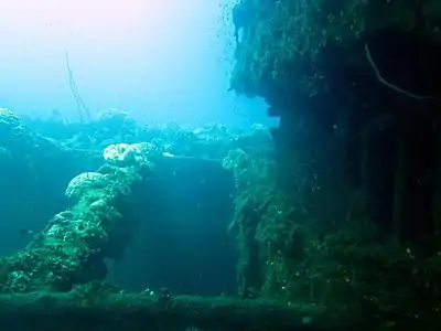 - Fujikawa Maru, a 437-ft (133-m) long freighter upright on the sea floor.