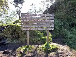 The Cirque de Salazie crater basin on the northeast side can be reached on the GR R1 hiking trail via the ascent to the Caverne Dufour hut on the Piton des Neiges and from there then further to the northwest as a hike.