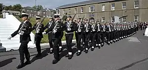 - ๐ Haulbowline is the island half a km northwest of Spike Island. Just admire it from afar: although it's joined to the west harbour shore by a causeway, it's an Irish navy base, ugly and off-limits.