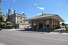 - 🌍 Victoria Hall, 55 King St. W., ☏ +1 905-372-2210 (concert hall box office), toll-free: +1-855-372-2210, fax: +1 905-372-0781. 1860 Palladian-style city hall with Old Bailey-style courtroom, Concert Hall and ballroom. National Historic Site with Grecian columns, stone-cut insignia and clock tower. Vintage film festival in late October. Guided tours year-round, site is available as wedding venue. For a brief moment in 1856 the town, with its new railway link to the interior and an east-west rail connection along the Grand Trunk Railway, was feeling secure in its future prosperity, and thought a new town hall would encourage further investment and be an asset to the area. The building serves as the town hall, home of the Art Gallery of Northumberland, the Cobourg Concert Hall, and has a courtroom that is now used as the Council chamber. Victoria Hall was officially opened in 1860 by the Prince of Wales, later to become King Edward VII.