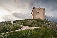 - 🌍 Castell de Cocentaina (Castillo de Cocentaina / Cocentaina Castle) (Penyeta Blanca). The Gothic watchtower overlooking the town was built between the late 13th and early 14th centuries atop possible earlier Iberian and Moorish remains; it has been restored. It is generally closed, but the 🌍 Ajuntament (ayuntamiento / town hall) will lend out keys on request (ID required). There are two possible access routes: one from the south via a steep footpath which starts near the train station, and the other via car from the north, with the last 200 m by foot.