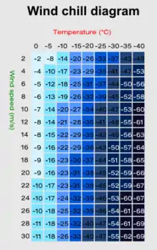 Cold weather is much less dangerous when not combined with wetness or wind. Moist air will feel much colder than dry air at the same temperature, and wind will increase the cooling effect and thereby the frostbite risk.