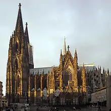 - 🌍 Kölner Dom (Cathedral) (U-Bahn: Dom / Hbf). M-Sa 06:00-19:30 (May-Oct: 06:00-21:00), Su 13:00-16:30. A UNESCO World Heritage site. It took over 630 years to complete this monumental cathedral. In 1880 the cathedral was finally consecrated. Cologne's Dom is the first sight you will notice when taking the main exit from the central station. (If you don't see it, you've taken the back exit.) If you are in good shape, take the 509 stairs to the top of the south tower. It takes about an hour, so wear comfortable shoes, but it's worth the hike. Touring the cathedral is forbidden during Mass. Entry into the cathedral is free but you will be asked for a donation. Admission to the tower costs: €5, reduced: €2, family: €8. Admission to the treasury costs: €6, reduced: €4, family: €12. However, a combined ticket granting you admission to the treasury and tower can be purchased for (regular/reduced/family): €8/€4/€16. No luggage may be carried inside.