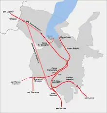- π Como Lago. Como's other main station - with trains to Milan and Saronno.