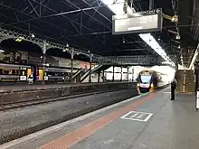 Geelong is easily reached by train, with V/Line operating a near-suburban level of service between Melbourne and the city on the Geelong Line. The city has seven stations: from north to south, they are Corio, North Shore, North Geelong, Geelong, South Geelong, Marshall and Waurn Ponds. All trains stop at the grand Geelong Station, a five-minute walk from the city centre. Trains on the long-distance Warrnambool Line also stop at Geelong and provide a connection to inland towns including Colac, Camperdown and the western city of Warrnambool.