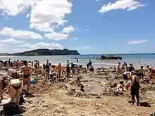 - Hot Water Beach is a beach with two hot springs emerging under the sands, meaning visitors can dig their own hot pool. A popular and busy tourist destination, visitors are advised to arrive an hour or two before low tide, when the springs emerge from the receding tide. Hot Water Beach is signposted from the road south of Whitianga. Bring your own spade.