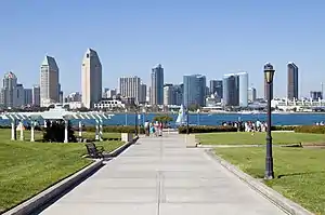 - π Centennial Park, at the bottom of Orange Avenue, at the bay. Visitors can walk several different paths with views of downtown San Diego. Bike rentals are also available, with a bike path that runs all the way to Imperial Beach. Boat rentals are also available for sailing around the bay.