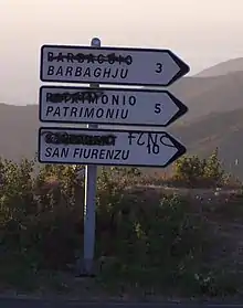 Car is the simplest way to get around this rugged island, as public transport is limited and the hills are formidable. Many people arrive by ferry and take their own car onto the island. Rental cars are available from airports and ferry ports, but do book ahead. Supermarkets do not generally have petrol stations, so make sure you have a decent reserve before embarking on a longer trip. The roads are often twisty and don't allow high speeds, but the road surface is mostly in good repair even in the mountains - except where, all of a sudden, it isn't. Signposting is good, but you may benefit from Satnav (GPS) in the towns, as traditional little blue French street signs are hard to read from a moving vehicle. Place names are given in French and Corsican: Corsican activists have diligently painted out the French, but you should have no difficulty recognising the Corsican names.
