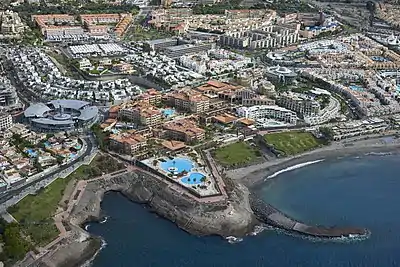 Costa Adeje is a resort town north of Los Cristianos. The name derives from the nearby town inland Adeje. It is roughly 2 km north of Playa de las Américas and 5 km north-west of Los Cristianos.
