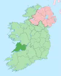 County Clare (Contae an ChlΓ‘ir) is in the Shannon Region of Ireland. The eastern part is farmland, dotted with ruined abbeys and small market towns; the west and north are bare limestone ridges and cliffs facing the Atlantic weather. It's very touristy: Shannon airport, medieval banquets at Bunratty, Cliffs of Moher, trad Irish music in the villages, looking up ancestors in Corofin: the package itinerary writes itself. But this means visitor amenities are well-developed, and you only have to turn up any quiet lane to escape the circus and have the place to yourself.
