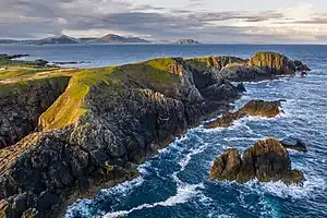 - Cliffs, sea stacks and mountains adorn much of the coast. Prominent peaks are Slieve Naght in the north, Errigal in the middle and the Bluestack mountains in the south.